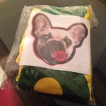 A primeira caixa que encomendei fiz com o perfil do Toddy: macho, aproximadamente 3 anos, 15 kg, brincalhão. E recebi com os seguintes itens: uma garrafa de pelúcia da marca Futon Dog & Home, um jornal de pelúcia também da Futon, uma camisa do Brasil da Austore, um osso mordedor da Odontopet e um lenço para limpar patas Higipatas.